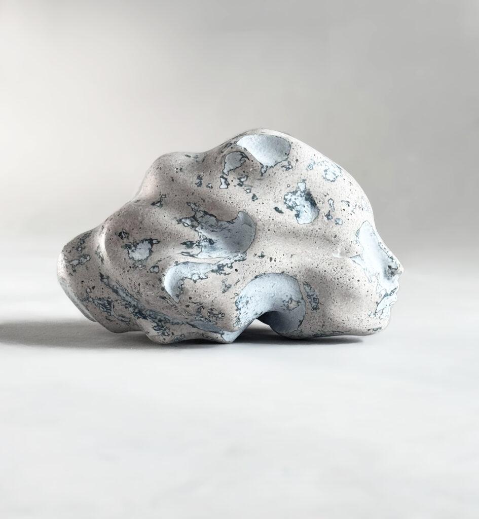 „Tipping point” represents a turning point, a step into the unknown, which requires great determination and courage. A moment when any scenario is still possible, a moment when we are experiencing both fear and hope. The surface of the sculpture is the boundary between the fall and the road to success. The face partially covered by the swirling matter can draw energy from it or be swallowed up irretrievably.